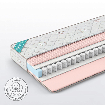 Самая жесткая и износостойкая модель в серии. Такой матрас легко выдержит вес ребенка и при необходимости вес взрослого человека. Комбинация бикоттона и массажной пены плотностью 25 кг/м позволяет эффективно распределять весовую нагрузку, сохраняя высокие эксплуатационные показатели. За счет «трехмерной» поверхности пены улучшается воздухообмен, а с ним гигиеничность спального места. Матрас комплектуется мягким и дышащим трикотажем «Ovis».