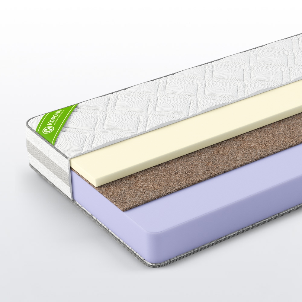 Беспружинная модель сочетающая в себе высокий уровень комфорта и способность выдерживать большой вес пользователя. Комбинация плотной ортопедической пены и слоя кокосовой койры равномерно распределяет оказываемое на матрас давление и не позволяет ему проседать от нагрузки. Пена с эффектом памяти смягчает спальное место, подстраиваясь под контур тела, и не оказывает обратного давления на мышцы и мягкие ткани.